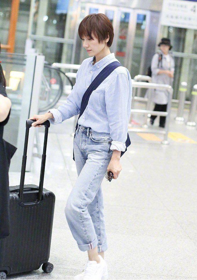 日常穿搭就应简约化,太过隆重的打扮会给人博人眼球之感。袁泉的美正是由极简风塑造而成,浅蓝色的纯棉衬衫,搭配水洗蓝九分牛仔直筒裤,干净清爽且利落减龄。