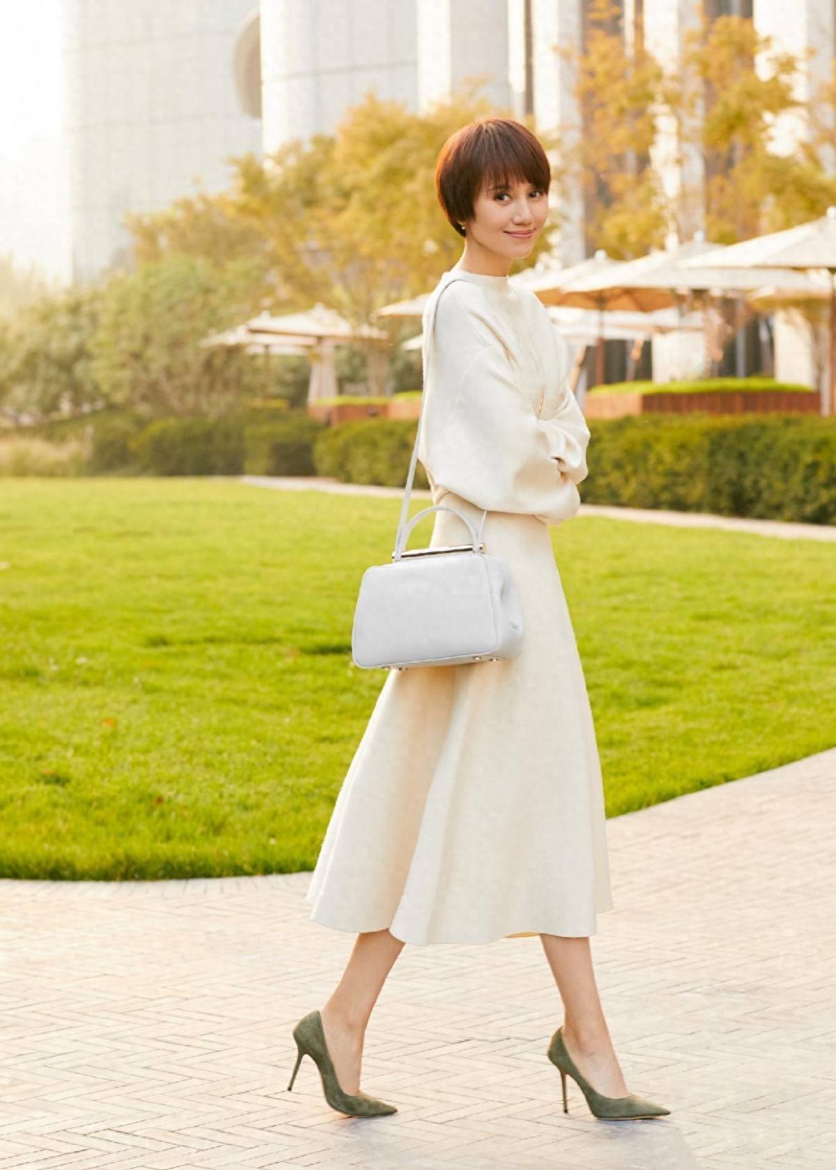 中年女性的穿搭没有上限,可尽情尝试不同风格,大胆秀出身材优势。米白色的收腰连衣裙,穿在身上显白又提气质,搭配尖头细高跟,女人味十足。